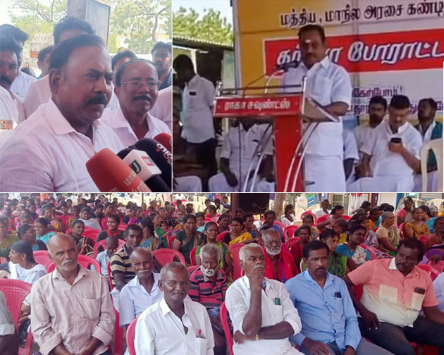 இதேபோல் ஐ.என்.டி.யு.சி. தொழிற்சங்க தேசிய செயலாளர் கதிர்வேல், தமிழக வெற்றி கழகம் ஜே.கே.ஆர். முருகன், நாம் தமிழர் கட்சி ஜேக்கப் தேவதாஸ் அபிஷேக், அன்னலட்சுமி, உழவர் உழைப்பாளர் கட்சி ராஜேஷ், மீனவர் சங்கம் முனியசாமி உட்பட பல்வேறு கட்சிகளைச் சேர்ந்தவர்கள் கலந்து கொண்டு உப்பளங்களை பாதுகாக்க வலியுறுத்தி பேசினர்.