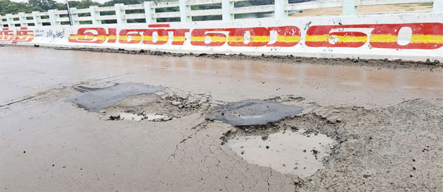 ஏரல் தாமிரபரணி உயர்மட்ட பாலத்தில் திடீர் பள்ளம்: இணைப்புச்சாலையும் ½ அடி கீழே இறங்கியது