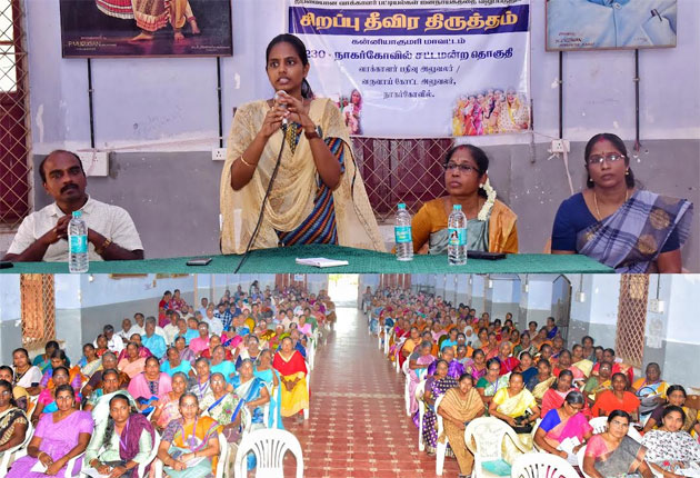 இந்திய தேர்தல் ஆணையத்தின் அறிவுறுத்தலின்படி, கன்னியாகுமரி மாவட்டம் எஸ்.எல்.பி அரசு மேல்நிலைப்பள்ளி கலையரங்கில் இன்று (01.11.2025) நாகர்கோவில் சட்டமன்ற தொகுதிக்குட்பட்ட வாக்காளர் பட்டியல் சிறப்பு தீவிர திருத்தம் குறித்த பயிற்சினை வாக்குசாவடி நிலை அலுவலர் மேற்பார்வையாளர்கள் மற்றும் வாக்குச்சாவடி நிலை அலுவலர்களுக்கு நாகர்கோவில் சட்டமன்ற தொகுதி வாக்காளர் பதிவு அலுவலர் மற்றும் நாகர்கோவில் வருவாய் கோட்டாட்சியர் செல்வி.எஸ்.காளீஸ்வரி பயிற்சி வழங்கினார்.