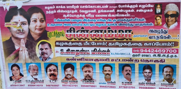 கழகத்தை காக்க சின்னம்மாவை அழைத்து வாருங்கள் : நாகர்கோவிலில் பரபரப்பு போஸ்டர்!