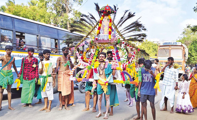 பொங்கல் திருநாளை முன்னிட்டு நேற்று முதல் கோவிலுக்கு, தமிழகத்தின் பல்வேறு பகுதிகளில் இருந்தும் ஏராளமான பக்தர்கள் பச்சை நிற மற்றும் காவி நிற ஆடை அணிந்து காவடி எடுத்தும், அலகு குத்தியும் பாதயாத்திரையாக வந்த வண்ணம் உள்ளனர்.