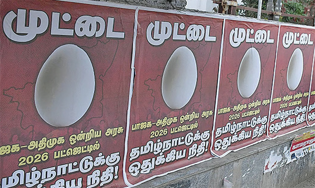 மத்திய பட்ஜெட்டில், தமிழகத்துக்கு போதிய நிதி ஒதுக்க வில்லை எனக்கூறி, கோவை மாநகரின் பல்வேறு பகுதிகளில் திமுக சார்பில் போஸ்டர்கள் ஒட்டப்பட்டிருந்தன. அதில் பாஜக-அதிமுக தமிழகத்துக்கு ஒதுக்கிய நிதி முட்டை என்றும், ‘பட்ஜெட் 2026 ஒரு பூஜ்யம்’ என்ற வாசகங்களும் இடம்பெற்றிருந்தன.