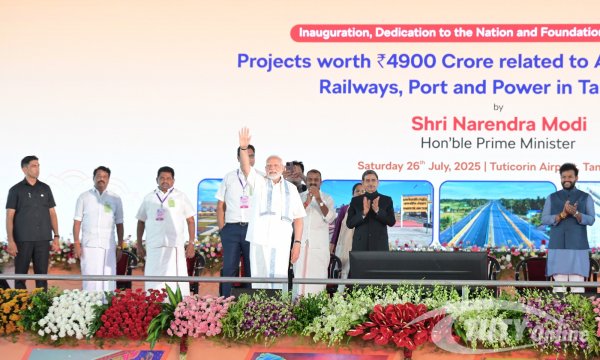 தூத்துக்குடியில், விமான நிலைய புதிய முனைய கட்டடம், நெடுஞ்சாலைகள், ரயில்வே, துறைமுகம், மின்சாரம் ஆகியவை தொடர்பான ரூ. 4,900 கோடி மதிப்பிலான திட்டங்களுக்கு பிரதமர் மோடி அடிக்கல் நாட்டியதுடன், நிறைவுற்றப் பணிகளை நாட்டுக்கு அர்ப்பணித்தார்.
