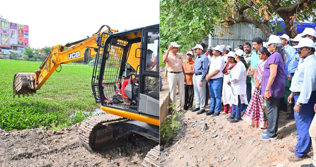 நெல்லை உடையார்பட்டி குளத்தினை அமலைசெடிகளை அகற்றி தூர்வாரி, நடைபாதை அமைக்கும் பணியை ஆட்சியர் சுகுமார் துவக்கி வைத்தார்.