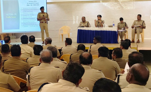 குலசேகரன்பட்டினம் முத்தாரம்மன் திருக்கோவில் தசரா திருவிழாவை முன்னிட்டு காவல்துறையினரின் பாதுகாப்பு ஏற்பாடுகள் குறித்து திருநெல்வேலி சரக காவல்துறை துணை தலைவர் (பொறுப்பு) சந்தோஷ் ஹடிமணி தலைமையில் ஆலோசனைக் கூட்டம் நடைபெற்றது.
