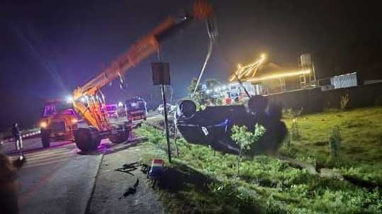 கன்னியாகுமரி மாவட்டம் நாகர்கோவில் அருகே உள்ள ஆரல்வாய்மொழி நான்கு வழிச்சாலையில் நின்ற நெடுஞ்சாலை காவல்துறை ரோந்து வாகனத்தின் மீது, குளச்சல் திமுக நகர செயலாளர். நாகூர்கான்(52) வந்த கார் வந்து மோதியதில் கார் சாலையோர பள்ளத்தில் கவிழ்ந்து விபத்துக்குள்ளானது.