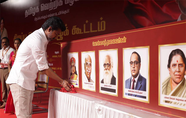முதலாவதாக கரூர் கூட்ட நெரிசல் சம்பவத்தில் பலியானவர்களுக்கு இரங்கல் தெரிவிக்கும் விதமாக மவுன அஞ்சலி செலுத்தப்பட்டது. பின்னர் அக்கட்சியின் கொள்கை தலைவர்களுக்கு மலர் தூவி மரியாதை செலுத்தப்பட்டது.