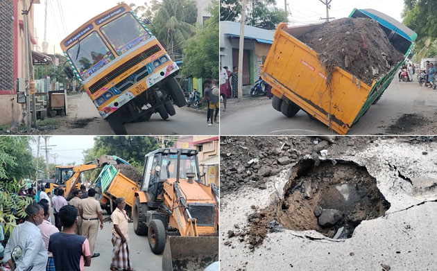 பாதாள சாக்கடைக்கு தோண்டி அதற்கான பைப்புகள் பதிக்கும் பணி நடைபெறும் போது மேலே மணலை போட்டு மூடும் போது சரியான முறையில் அழுத்தம் கொடுத்து மணலை நிரப்பு இருந்தால் இது போன்ற விபத்துக்கள் ஏற்பட்டிருக்காது. ஒப்பந்ததாரர்கள் அப்பகுதியில் கிடந்த மணலை வைத்து நிரப்பி மேலே தார் ஊற்றி மேற்பூச்சி வேலை செய்ததால் இதுபோன்ற விபத்துகள் ஏற்படுகிறது என பொதுமக்கள் குற்றம் சாட்டுகின்றனர்.