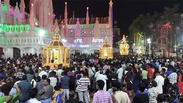 நாகர்கோவில் அருகே கோட்டாறு புனித சவேரியார் பேராலய திருவிழாவில் தேர் பவனி வெகு விமரிசையாக நடைபெற்றது.