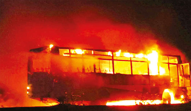 நான்கு வழிச்சாலையில் தீப்பிடித்து எரிந்த அரசு பஸ்: அதிர்ஷ்டவசமாக உயிர் தப்பிய பயணிகள்!