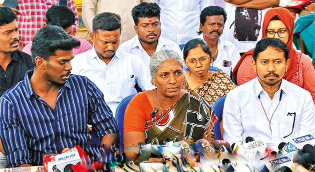 யார், யாரோ அடித்ததாகக் கூறுகிறார்கள். என்ன காரணத்திற்காக என் மகனை அடித்தார்கள்? நிகிதா பொய் புகார் கொடுத்திருக்கிறார். யார் சொல்லி புகார் கொடுத்தார்? பெரிய இடத்தில் இருந்து வந்த உத்தரவின்படி செய்ததாக அந்த 5 போலீஸ்காரர்கள் சொல்கிறார்கள். அந்த பெரிய இடம் என்பது யார்? எனக்குத் தெரிய வேண்டும். என் மகனை அடிப்பதற்கு முன் என்னிடம் முதலில் தகவல் தெரிவித்திருக்க வேண்டும். வியர்த்தது எல்லாம் காரணமா? நிகிதாவை கைது செய்ய வேண்டும்.
