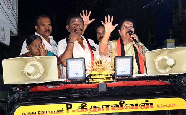 தூத்துக்குடி வடக்கு மாவட்ட திமுக செயலாளரான கீதா ஜீவன், மதச்சார்பற்ற முற்போக்குக் கூட்டணி சார்பில் தூத்துக்குடி தொகுதியில் போட்டியிடுகிறார். இன்று அவர் தூத்துக்குடி மாநகராட்சியின் 37 மற்றும் 42-வது வார்டு பகுதிகளில் தீவிர வாக்கு சேகரிப்பில் ஈடுபட்டார். மாநகரச் செயலாளர் ஆனந்தசேகரன் தலைமையில் நடைபெற்ற இந்தப் பிரச்சாரத்தில், மேயர் ஜெகன் பெரியசாமி உள்ளிட்ட முக்கிய நிர்வாகிகள் முன்னிலை வகித்தனர்.
