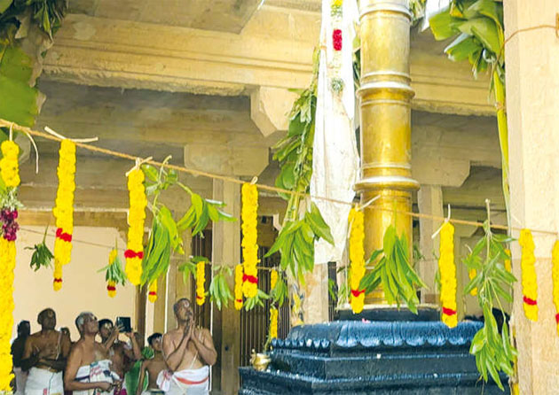 திருவிழாவை முன்னிட்டு நேற்று அதிகாலையில் கோவில் நடை திறக்கப்பட்டு விஸ்வரூபம், திருமஞ்சனம் மற்றும் தீபாராதனை நடைபெற்றது. காலை 8.45 மணிக்கு உற்சவர் பொலிந்து நின்ற பிரான் ஸ்ரீதேவி, பூதேவி மற்றும் நீளாதேவி அம்பாள்களுடன் கொடிமரம் முன்பு எழுந்தருளினார். அவருடன் நம்மாழ்வாரும் எழுந்தருளினார்.
