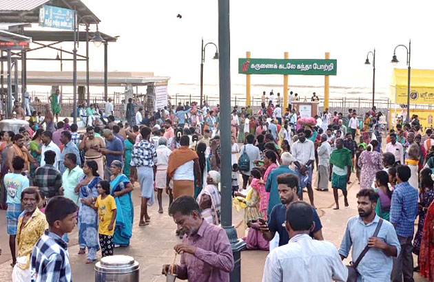 பள்ளிகளுக்குக் கோடை விடுமுறை விடப்பட்டுள்ளதாலும், இன்று ஞாயிறு விடுமுறை நாள் என்பதாலும் அதிகாலையிலிருந்தே பக்தர்கள் கூட்டம் அலைமோதியது. கடலில் புனித நீராடியும், நாழிக்கிணற்றில் நீராடியும் நீண்ட வரிசையில் காத்திருந்த பக்தர்கள், சுமார் 4 மணி நேரத்திற்குப் பிறகே மூலவரைத் தரிசிக்க முடிந்தது.