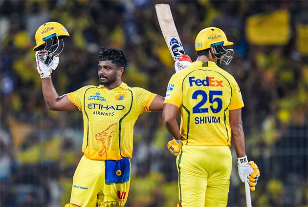 அவருக்கு ஈடுகொடுத்து விளையாடிய இளம் வீரர் ஆயுஷ் மாத்ரே 36 பந்துகளில் 59 ரன்கள் எடுத்து அசத்தினார். இறுதியில் சிவம் துபே 20 ரன்கள் சேர்க்க, சென்னை அணி 20 ஓவர் முடிவில் 2 விக்கெட் இழப்பிற்கு 212 ரன்கள் குவித்தது.